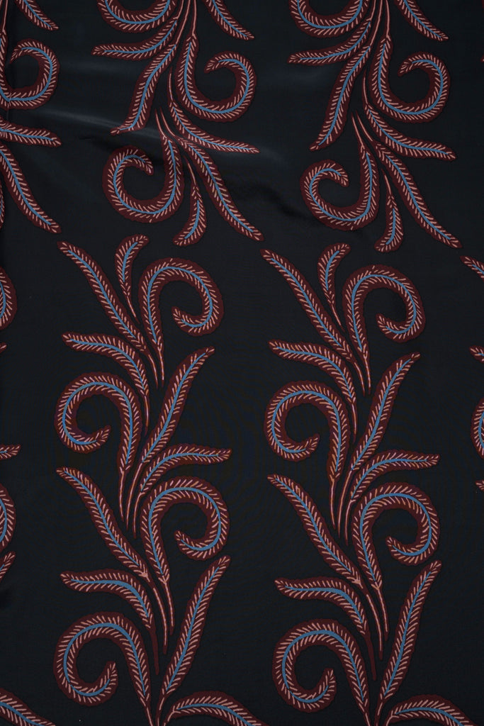 Feather Print, Midnight Burnout, and Black Silk are 100% Silk