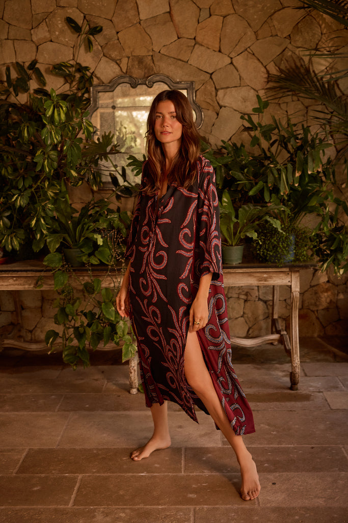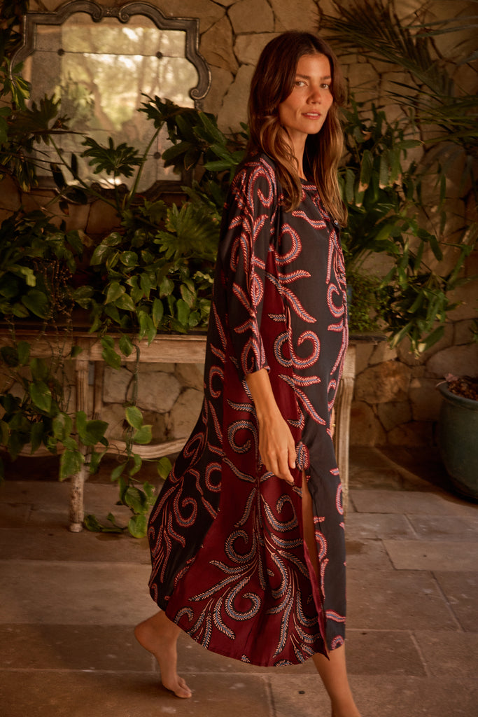Maxi dress with 3/4 length sleeves.