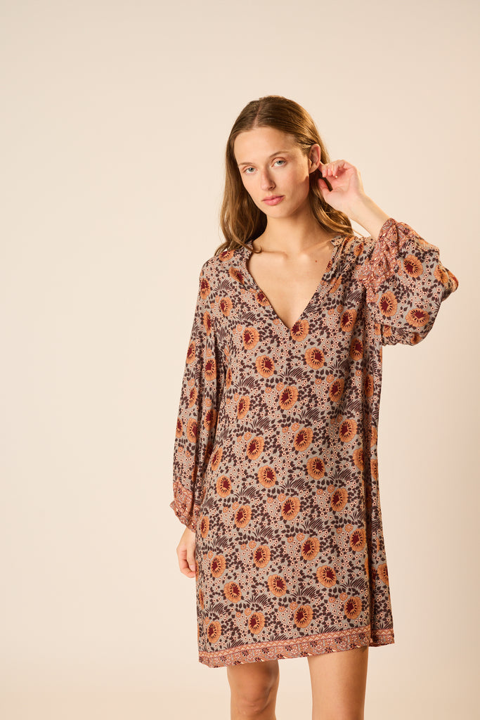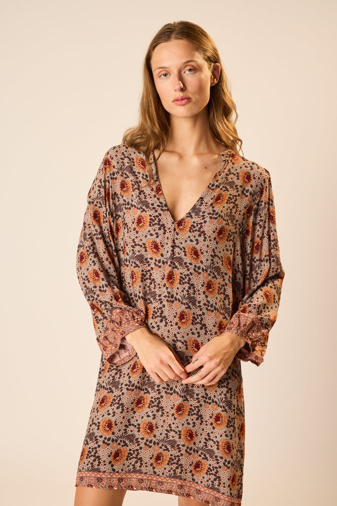 The Maria Dress is a sophisticated mini dress designed with a deep V neckline and an effortlessly flattering silhouette. Its elevated simplicity makes it perfect for pairing with sandals for a relaxed look or styling as a tunic over pants for a more layered ensemble.