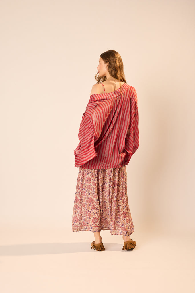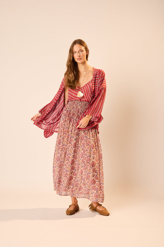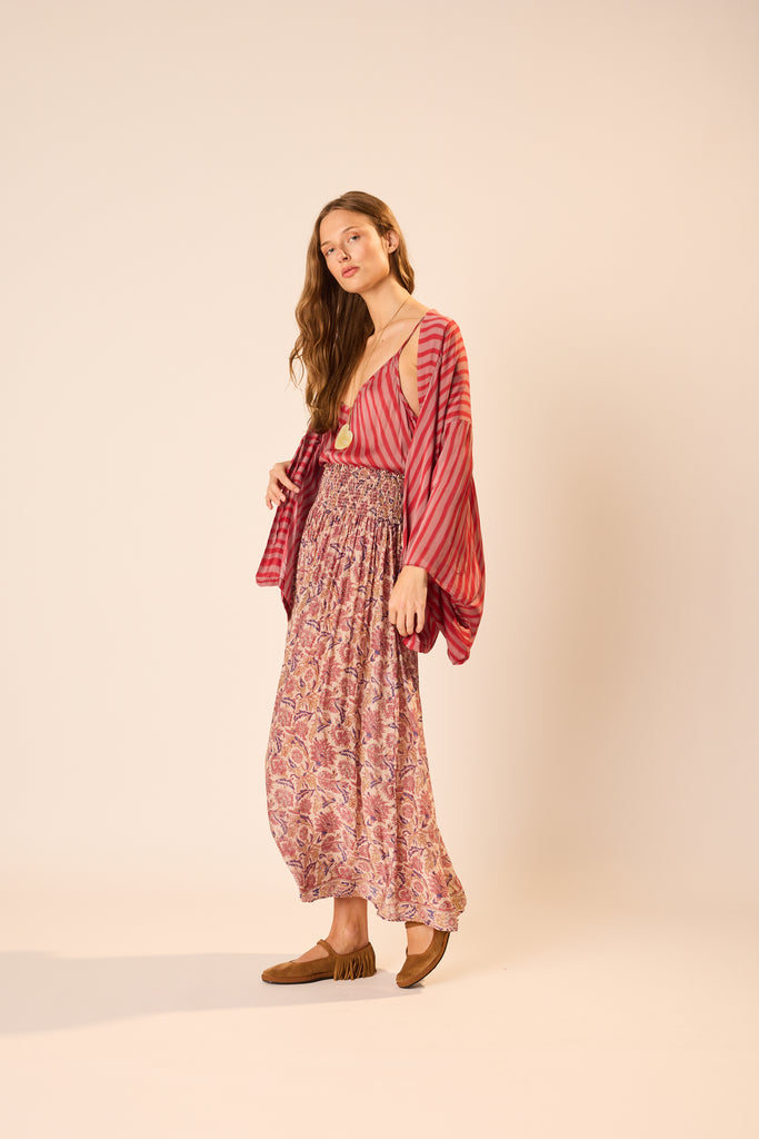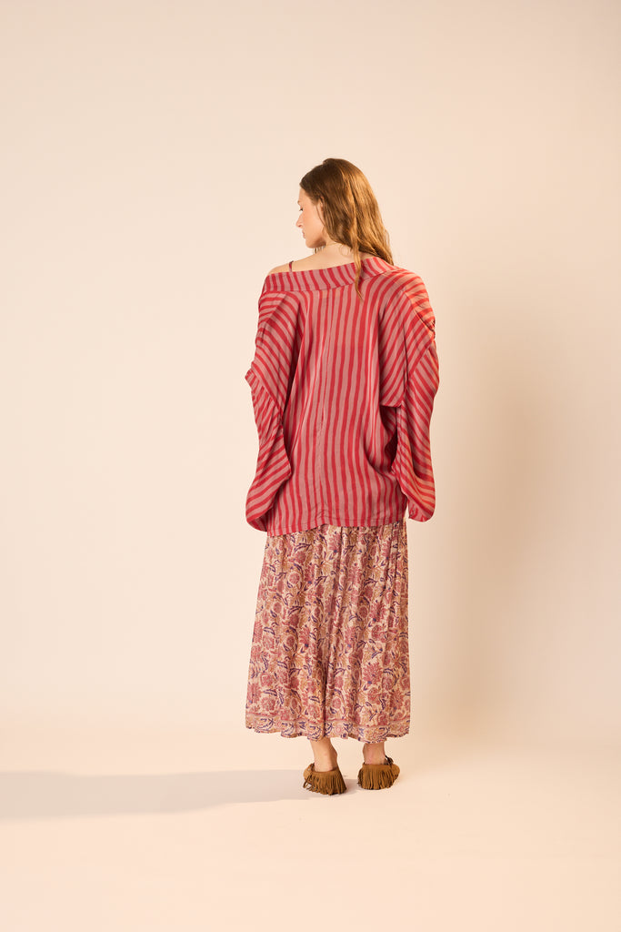 Open-front kimono with wide sleeves and front tie closure. Clean, minimal design ideal for layering.