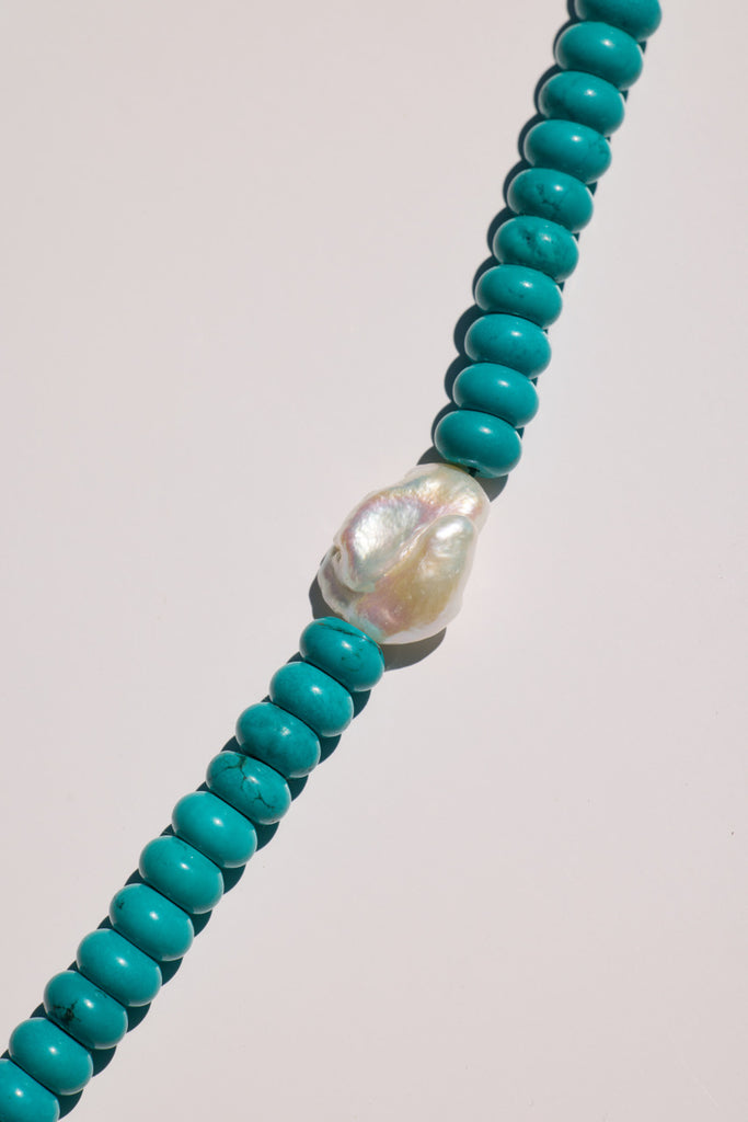 NM COLLECTOR NECKLACE - TURQUOISE & BAROQUE PEARL