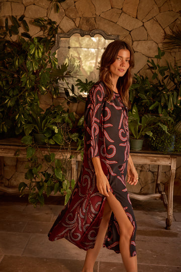 Maxi dress with 3/4 length sleeves.