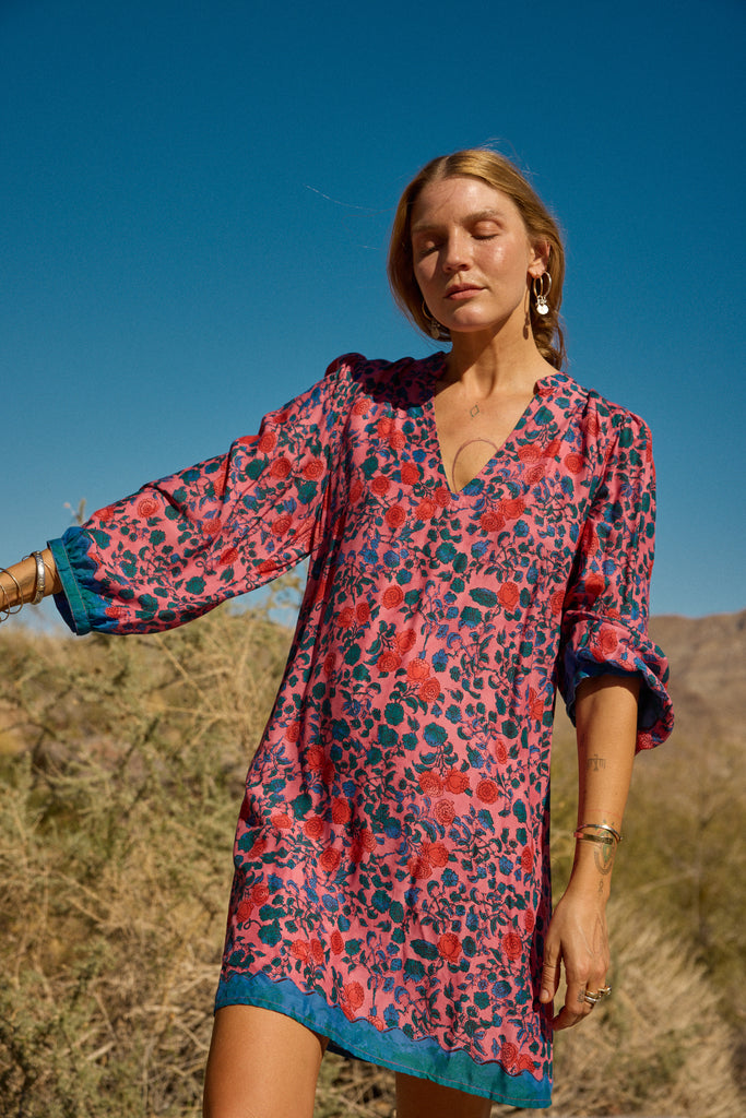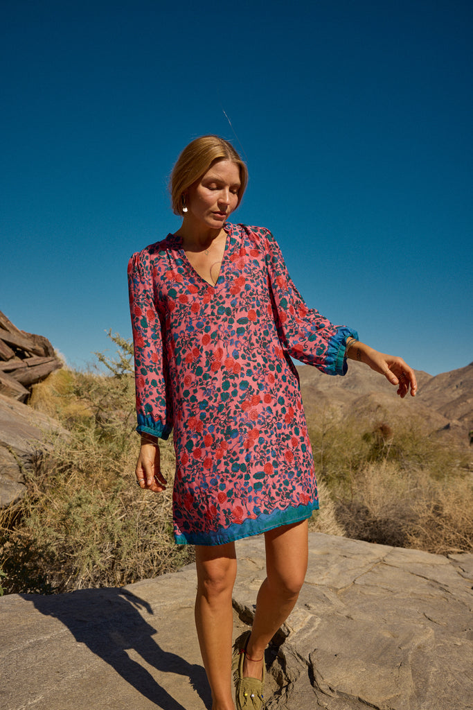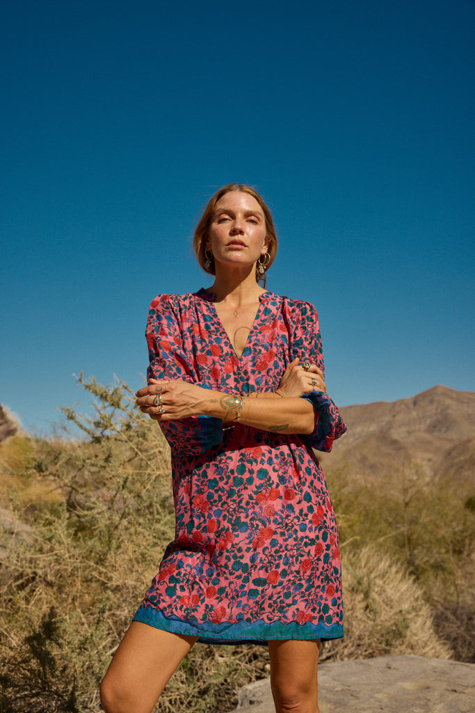 The Maria Dress is a sophisticated mini dress designed with a deep V neckline and an effortlessly flattering silhouette. Its elevated simplicity makes it perfect for pairing with sandals for a relaxed look or styling as a tunic over pants for a more layered ensemble.