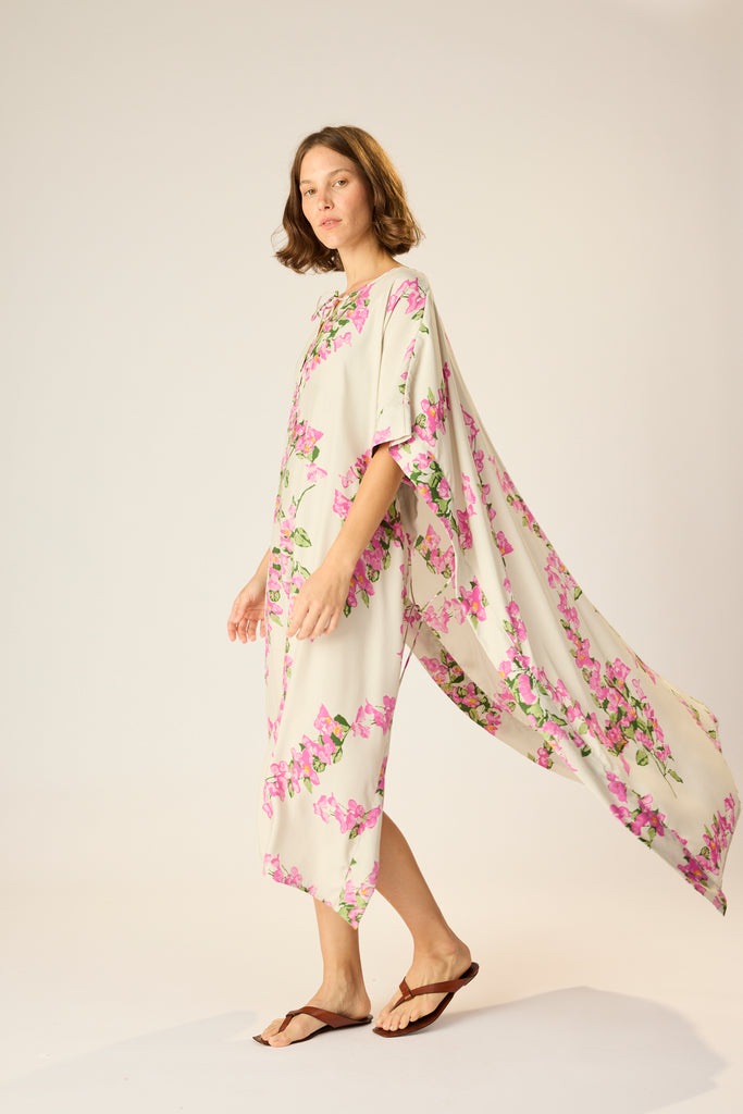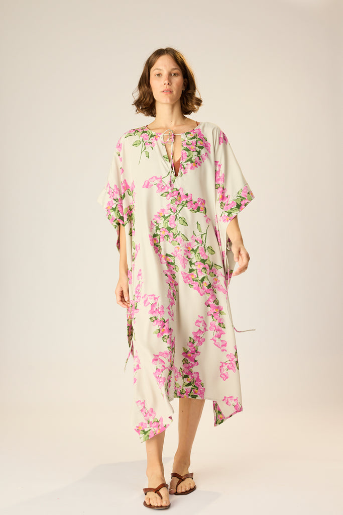 Our OS midi length Caftan takes you directly from the beach to your brunch. A tie-detail v neck paired with a fluid oversized silhouette donning feminine side slits and elegant seaming making it an easy to style wardrobe staple