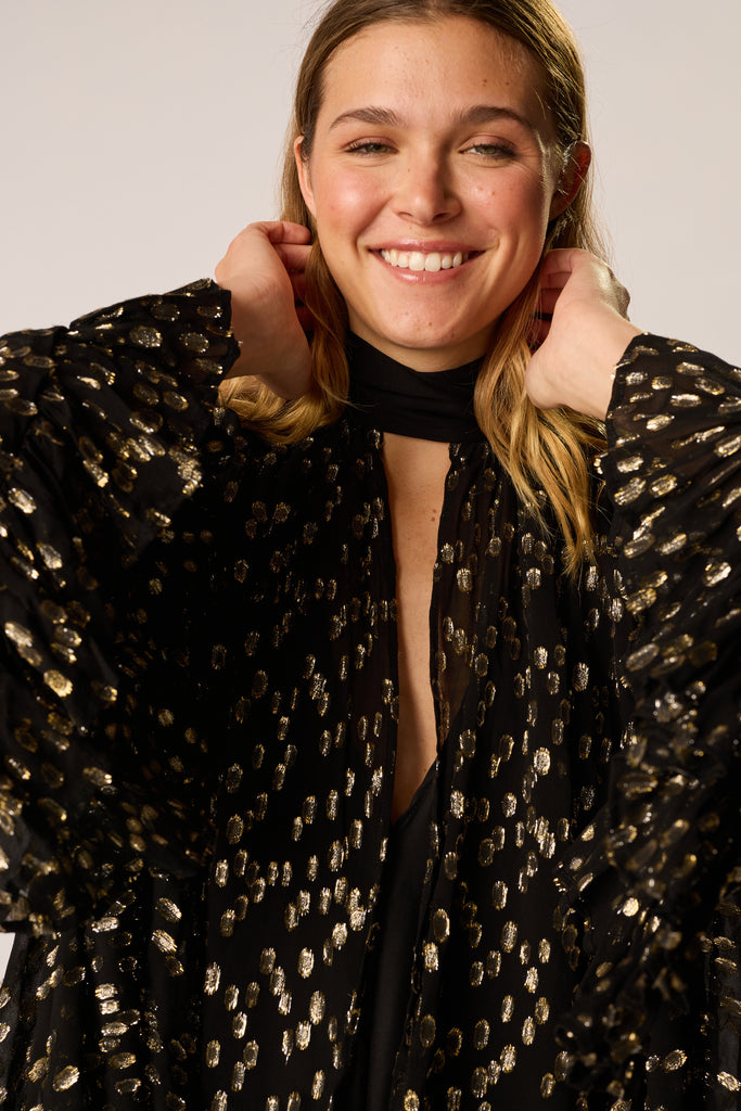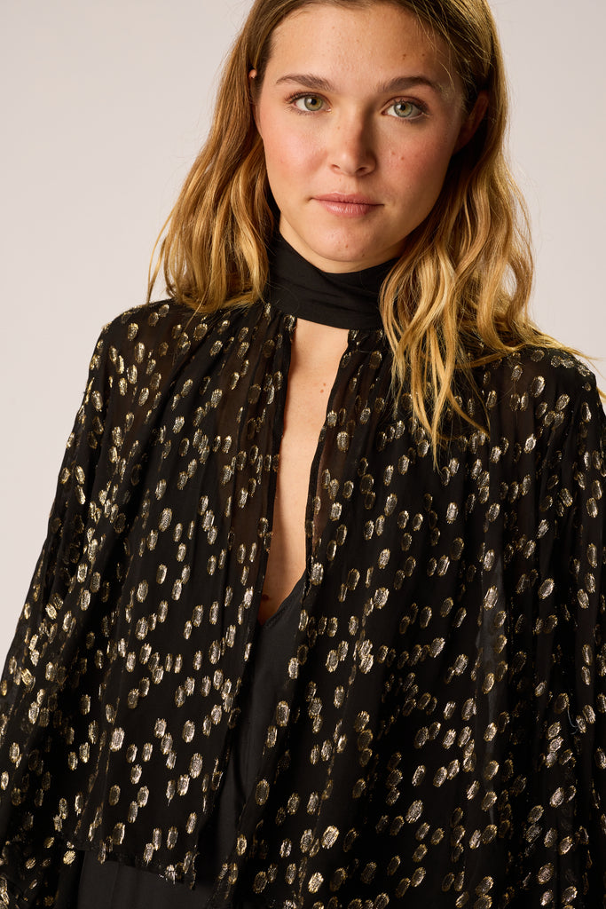Our new cape takes you directly from the beach to your brunch. A tie-detail v neck paired with a fluid oversized silhouette donning feminine side slits and elegant seaming making it an easy to style wardrobe staple.