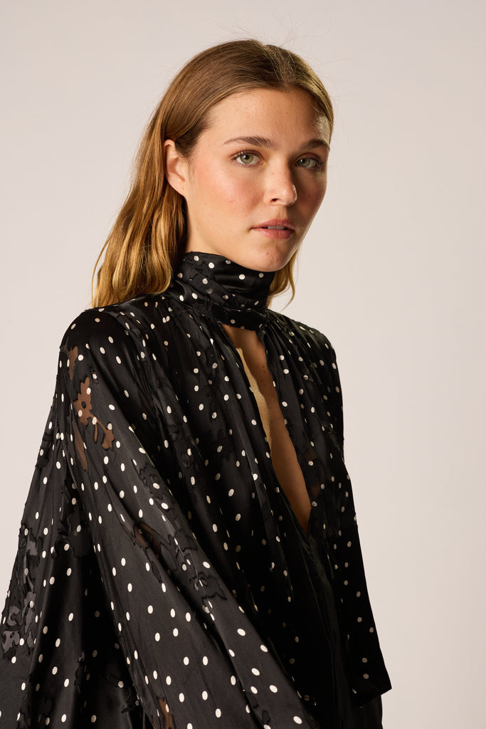 Crafted from 100% silk, our new Midnight Burnout print features a sheer floral burnout design.