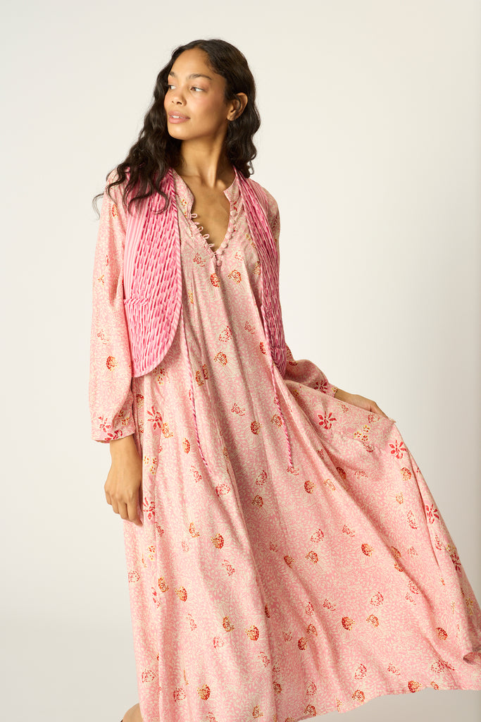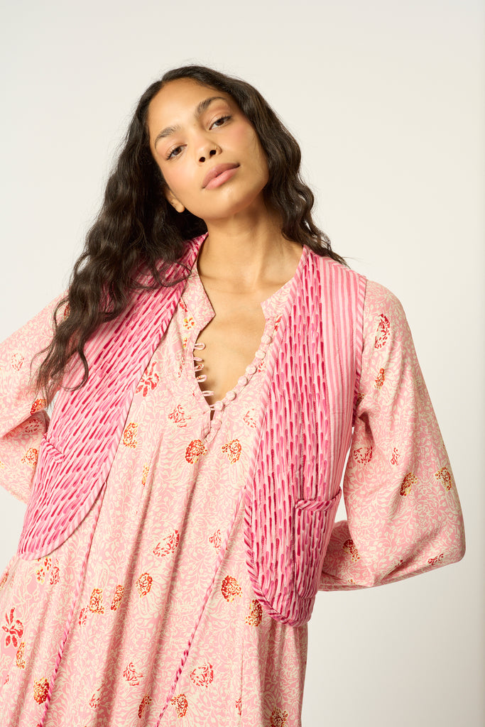 Thinly quilted reversible vest with tie detailing at the front. The perfect weight for any season, the Felicity makes outfitting easy and looks just as great layered over your favorite NM dress or easy white top as it does on its own.