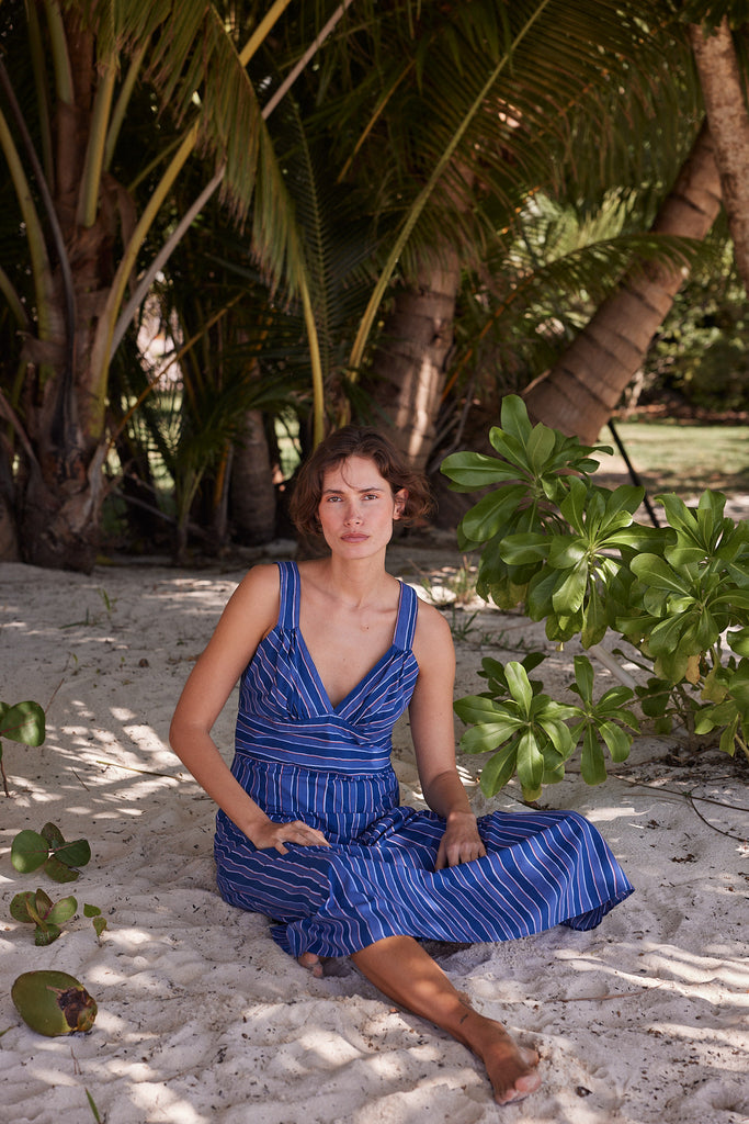 Fitted through the shoulder, chest, and waist, with an A-line skirt.