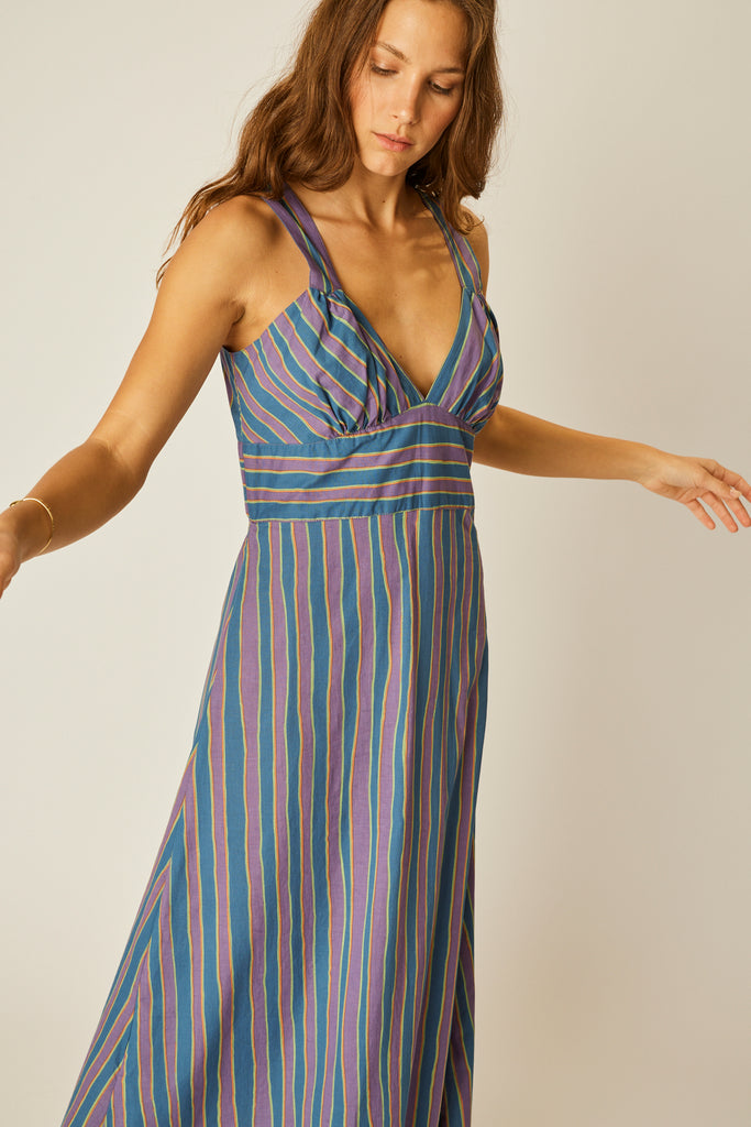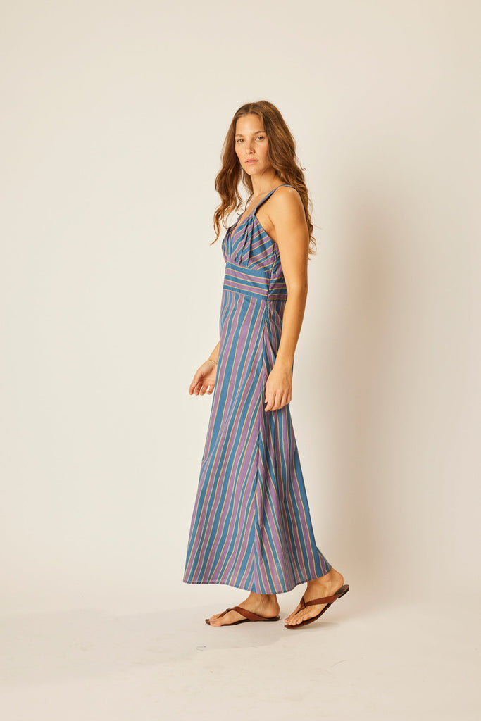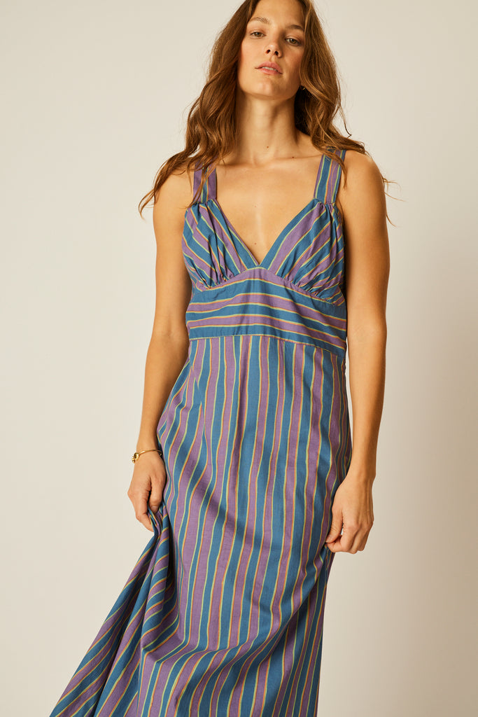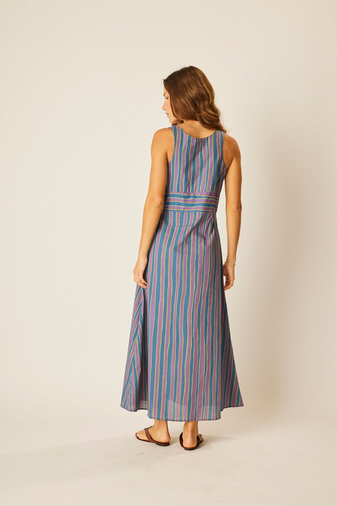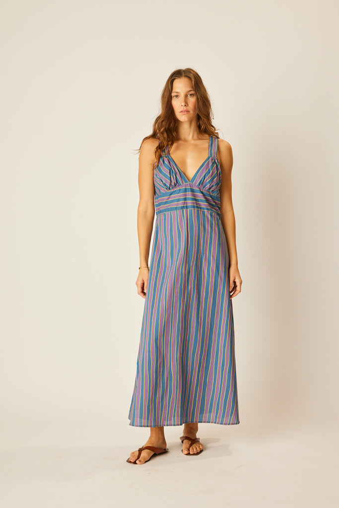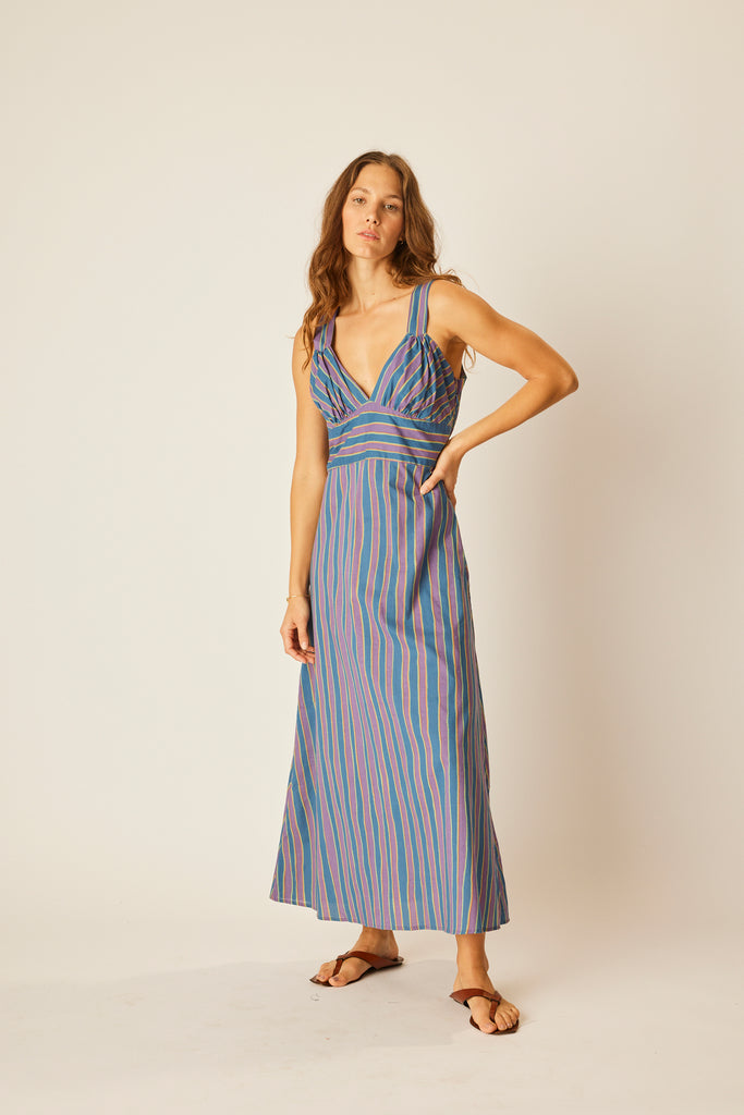 Fitted through the shoulder, chest, and waist, with an A-line skirt.