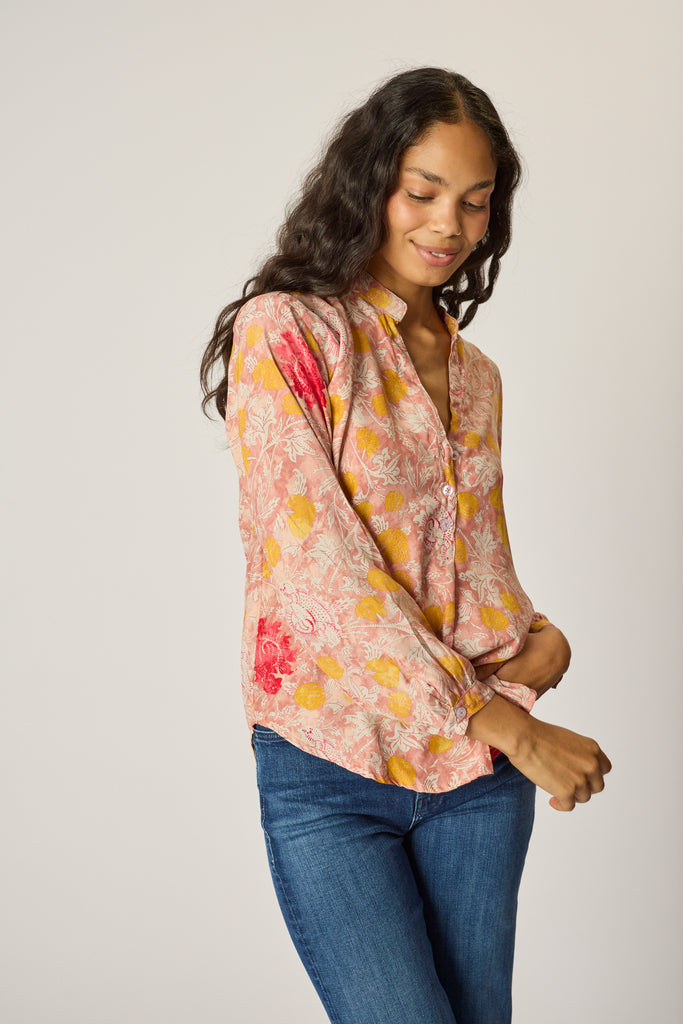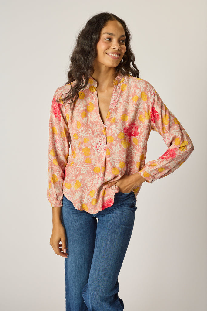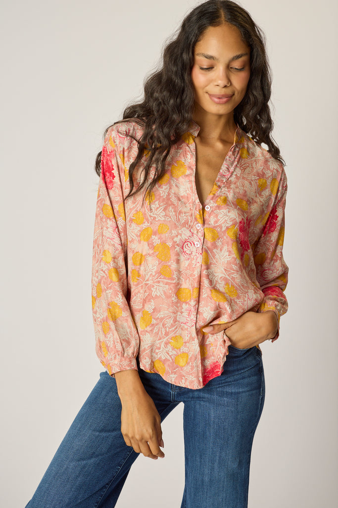 Tunic style blouse cut in a slim silhouette with button detailing at the cuffs.
