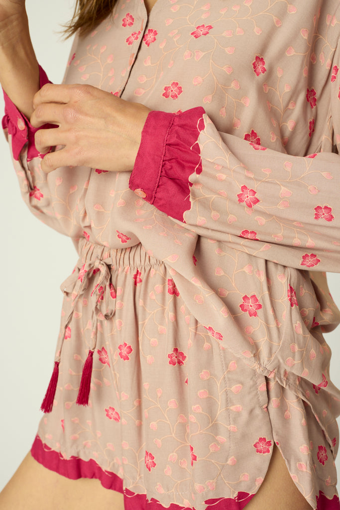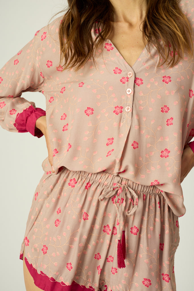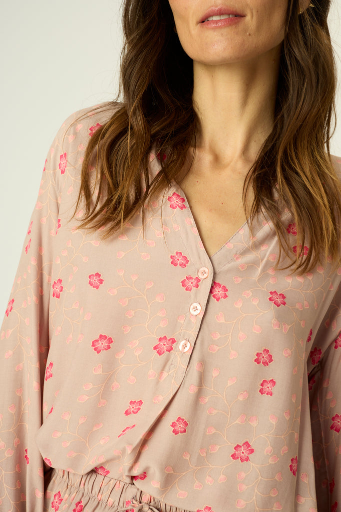 Tunic style blouse cut in a slim silhouette with button detailing at the cuffs.