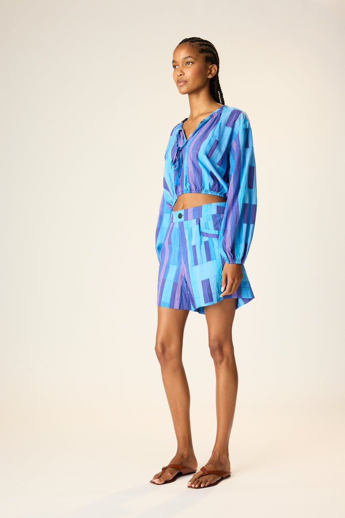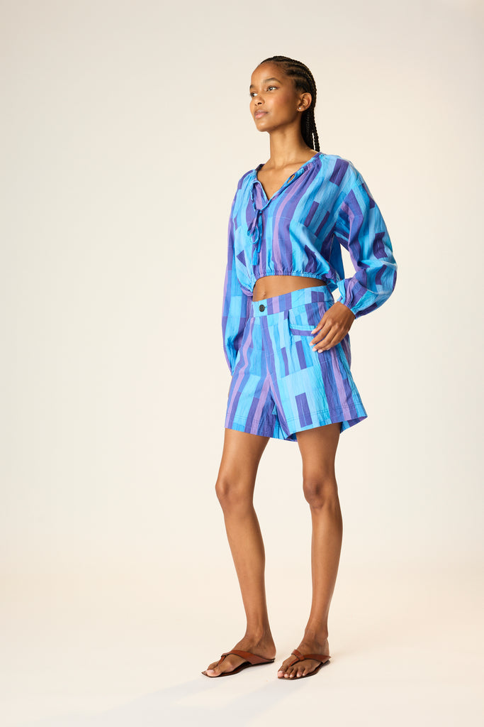 High-waisted Boyfriend Short, tailored with a button-fly closure, and welt pockets.