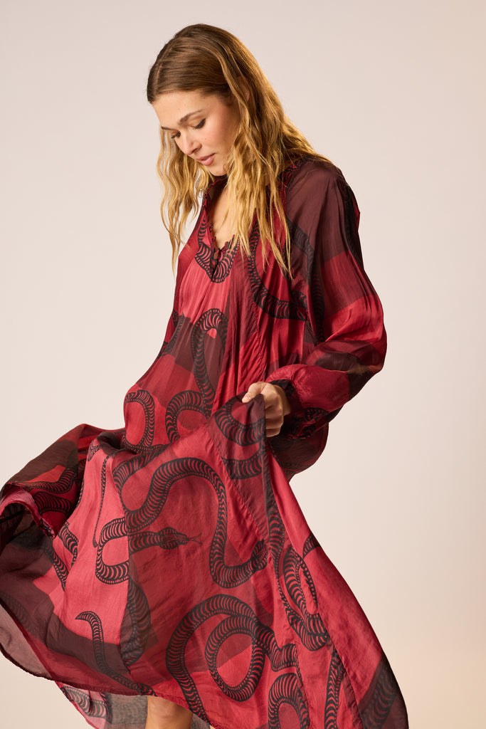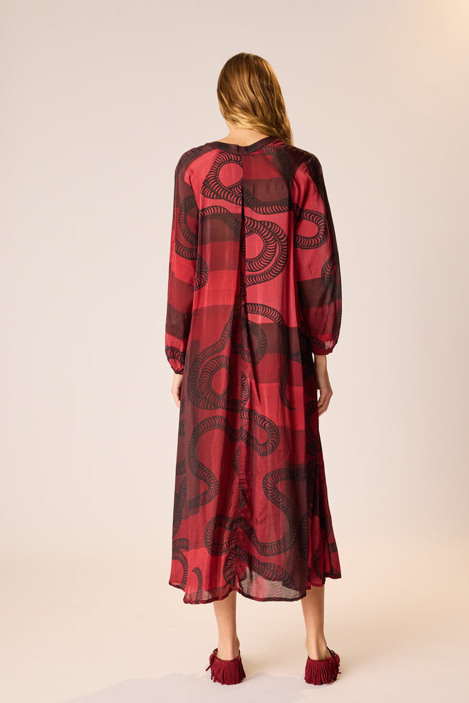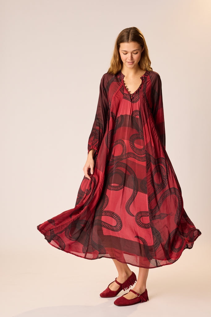 A-line cut and voluminous long sleeves.