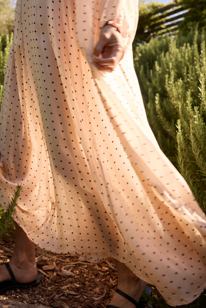 Please note: Due to the delicate nature of this fabrication, this print has a natural sheerness. For additional coverage, we suggest layering with a slip.
