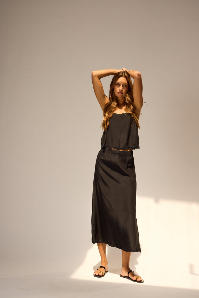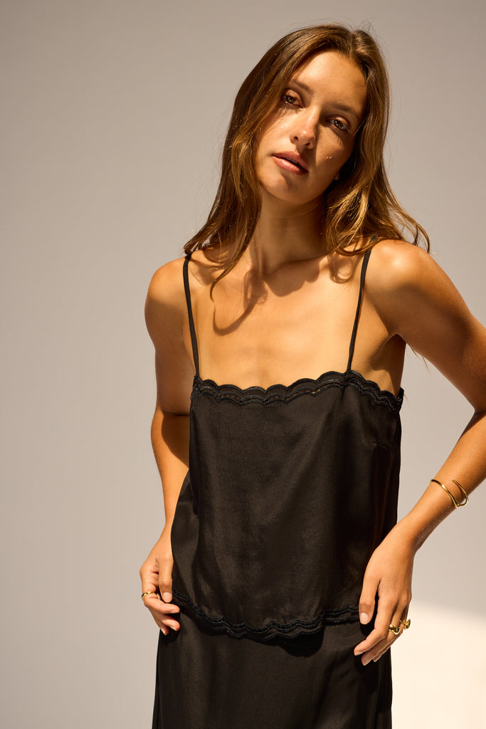 The Fern Cami features a square neck with fixed straps and has a fluid, easy fit. A minimalist silhouette designed for effortless layering or standalone wear.