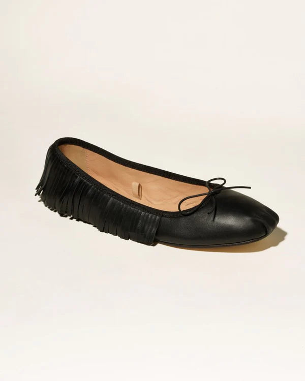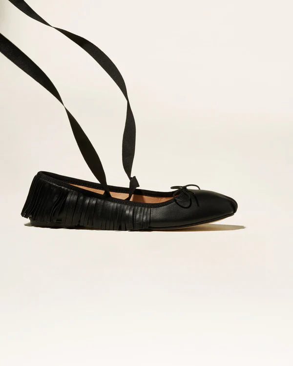 Discover the craftsmanship of Toujours. A ballet-inspired flat, handcrafted in Italy from supple leather or rich suede, both finished with elegant grosgrain laces. Featuring soft side fringe and interchangeable double laces—short for the ankle or long to wrap the leg—each pair is designed to be worn with or without laces. Set on a durable Goodyear leather sole and hand-stitched by skilled Italian artisans.