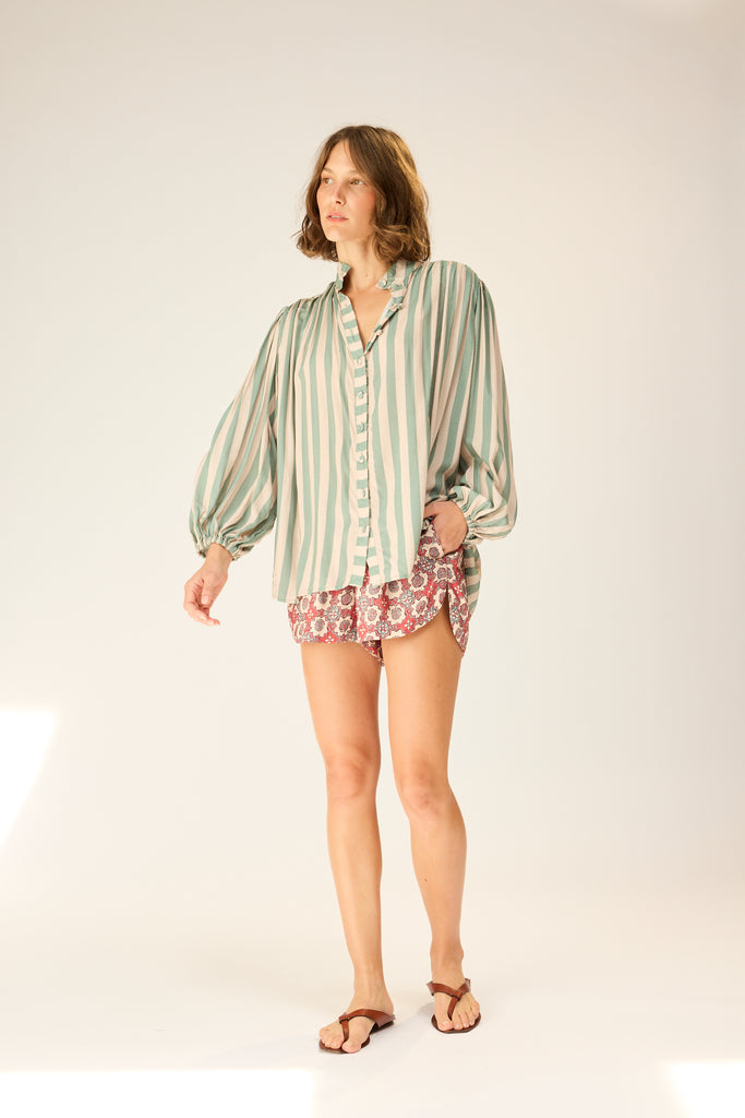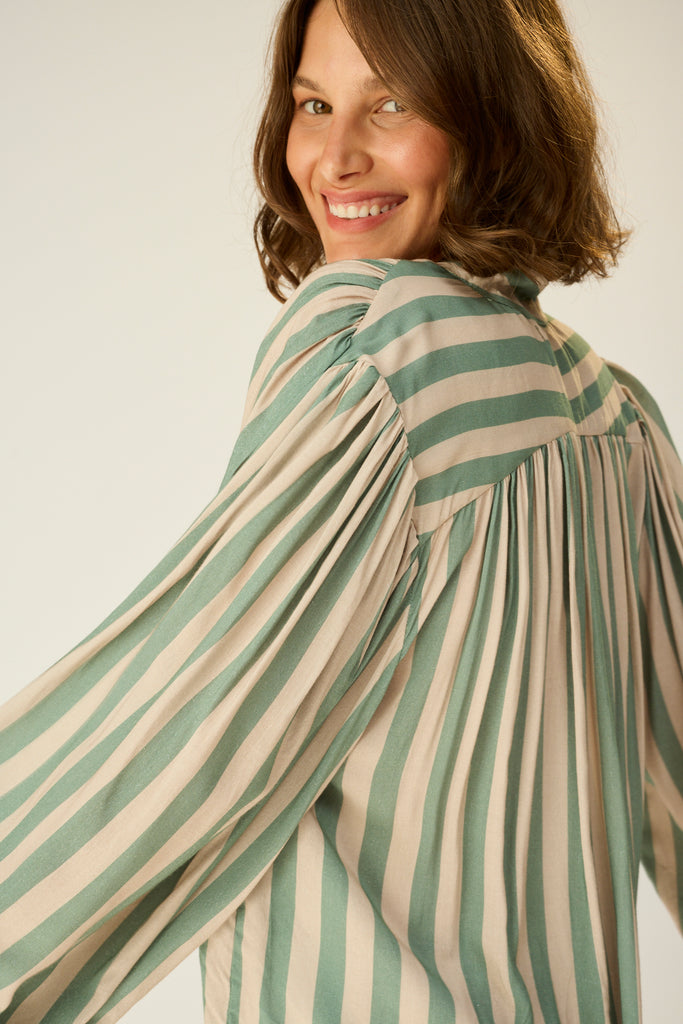 Slightly pleated under collar to add fullness.