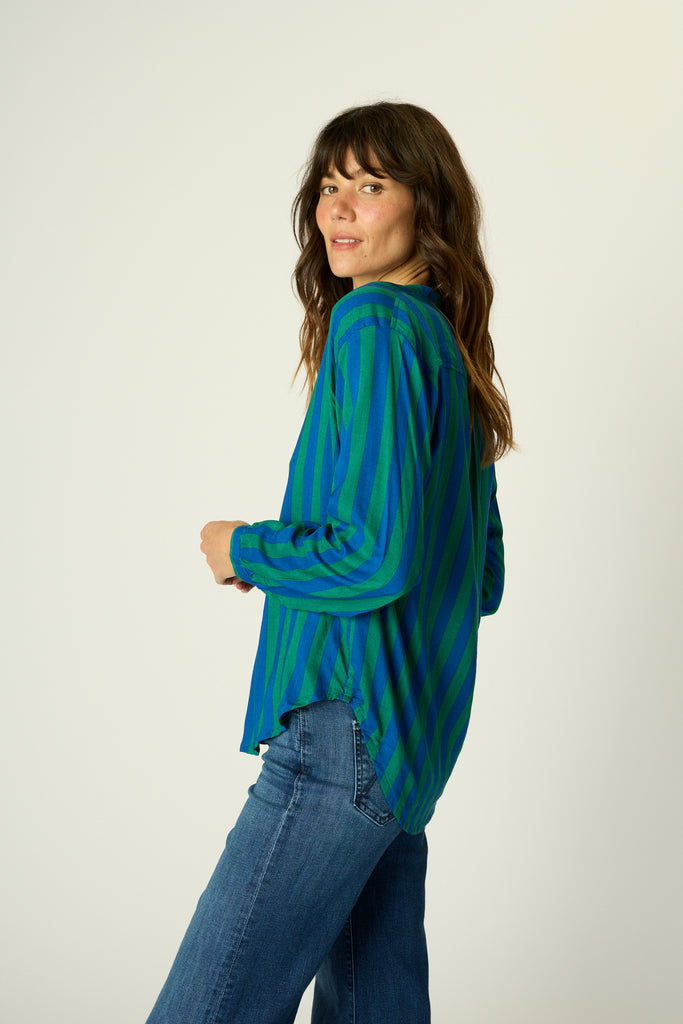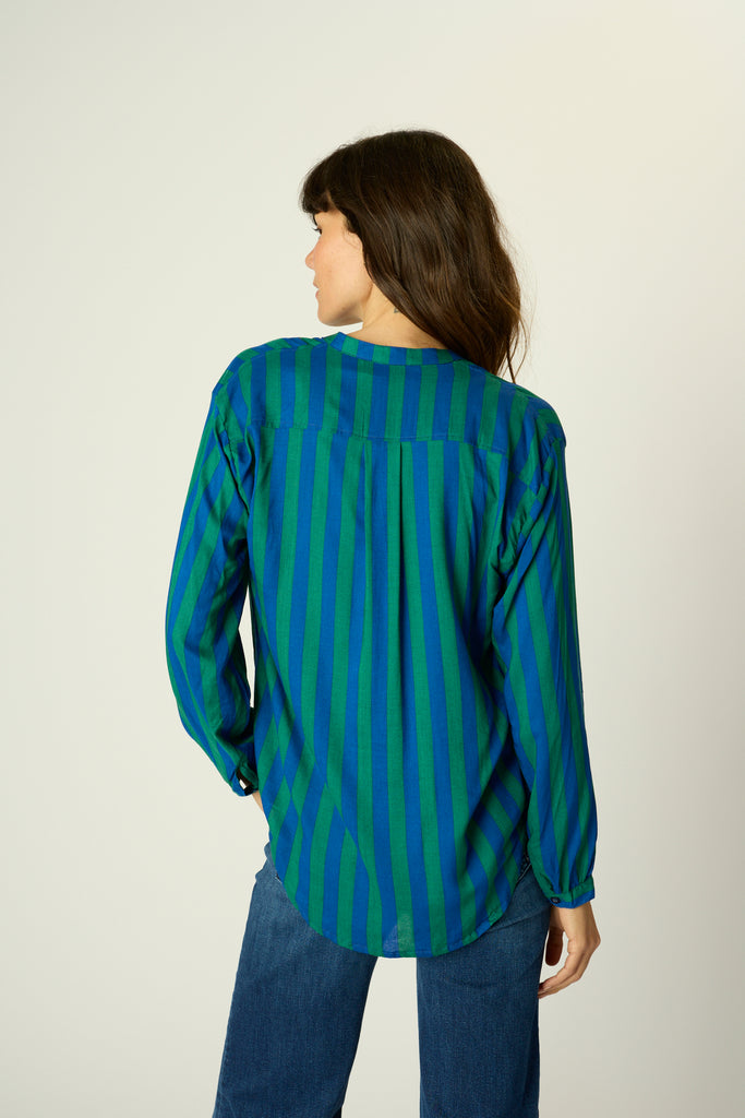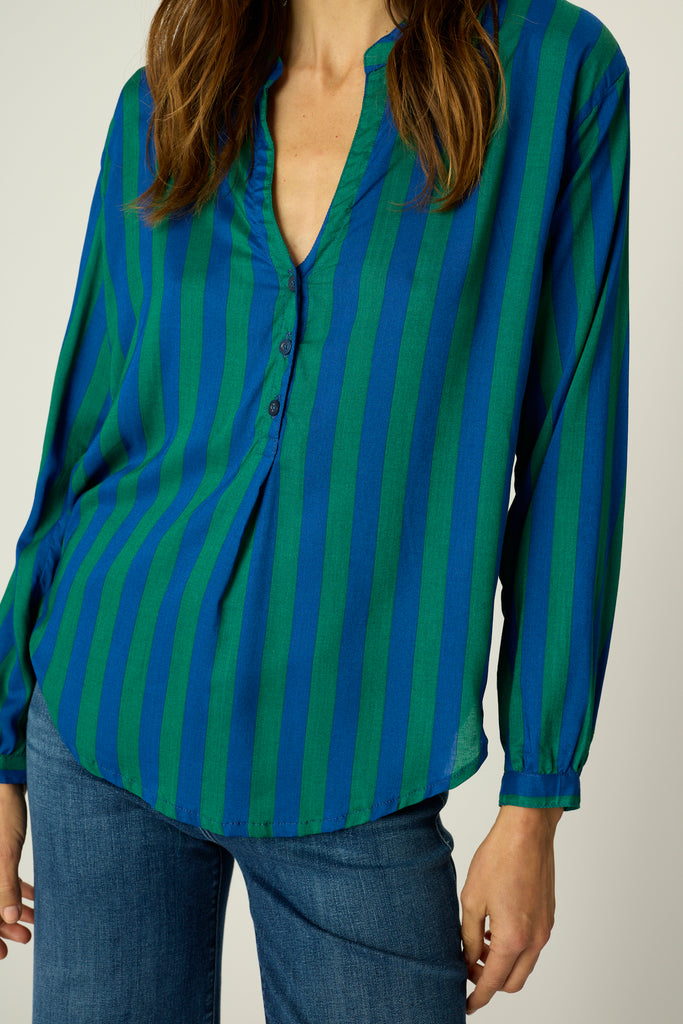 Tunic style blouse cut in a slim silhouette with button detailing at the cuffs.